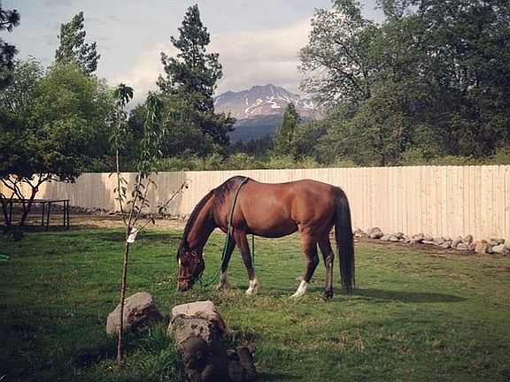 Custom cabin at the base of Mount Shasta with 360 degree views of Mt. Shasta, Mt. Eddy, Blackbutte and more. 250 miles of single track mountain bike, hiking and equestrian trails out the door. Walking distance to the town of Mt. Shasta, Shastice park (free summer concerts), frisbee golf, dog park, skate park, ice skating, high school and middle school and restaurants. 1 master bedroom, 2 bath with Sunroom and sleeping loft, Slate and bamboo floors, custom river rock accents thru out the home, wrap around deck, spiral staircase, custom wood box with indoor access, soapstone fireplace, walk in closet, two headed river rock shower, claw foot tub, concrete countertops, stainless steel appliances, copper kitchen sink, gas cook stove, on demand hot water, custom wood work and trim thru out, mud room with dog door, cor 10 corrugated metal and cedar siding for low to no maintenance, two stall barn with tack room and fenced for horses & animals, dome green house, Fire pit, RV hookups, new insulated shed with power, detached one car garage, mature gardens (blueberries, fruit trees, herbs, boysenberries, Marion berries, elderberries, bulbs and decorative trees) covered garden boxes, hot tub, outdoor shower, flat and usable land on one acre with an amazing well! Very private and quite. This property is set up for small farm or second home. Make your mountain living dreams come true!