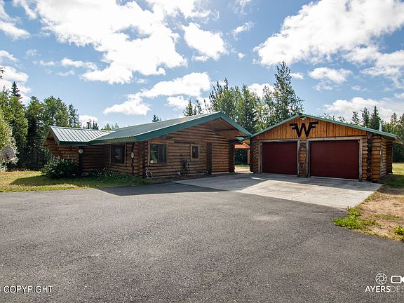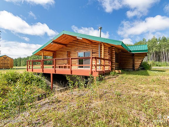 If you have been dreaming of the perfect Alaskan property for a pilot, here it is! This beautiful log home sits on 37.88 acres with two, FAA approved runways.  Imagine having a cup of coffee on the back deck then walking to your hangar for the days adventure. This beautiful hangar has a Higher Power, hydraulic door, winch, maintenance hoist, electricity and room to keep two planes.