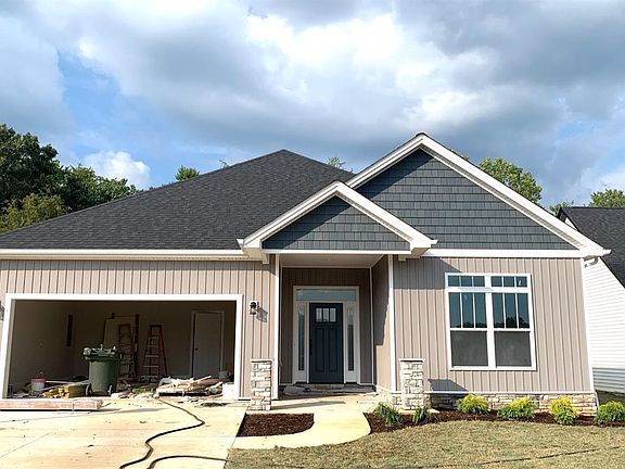 If you've been waiting for the perfect home to just move in & enjoy, this new home on one level in Farmington is it! A great layout for both day-to-day living, as well as hosting & entertaining, with thoughtful touches throughout. The front entry is highlighted by stone pillars & cedar columns. The main living area faces the private back yard and has a vaulted 12' ceiling. The flexible and open living room, dining area and kitchen are perfect for a variety of uses. The bright & open kitchen has an abundance of cabinetry, handsome granite counters & classic tile backsplash. The pantry area is enclosed by a barn door, and has shelving and butcher block counters. The mud room also has built storage, highlighted by a butcher block bench seat. Finally, the master suite has a bank of windows facing the woods, a nice sized double vanity & tiled walk in shower & large closet. The 2-car garage offers plenty of storage and parking & just one step into the home. Make it yours today!