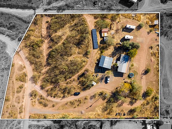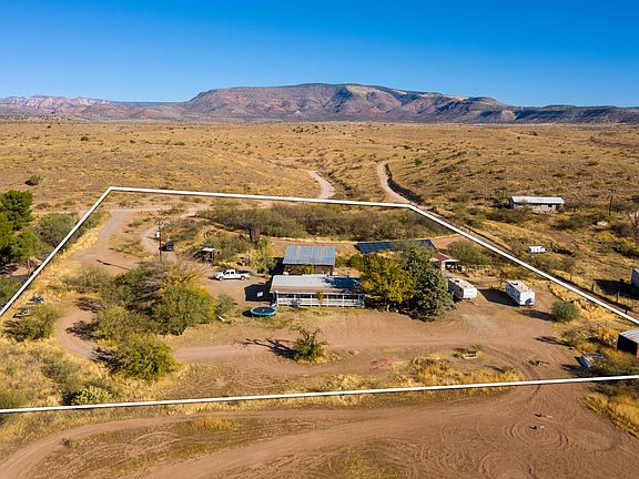 Want to get away from it all, but yet, at the same time, be only about 20-minutes from ''civilization?'' Well here you can! Situated on 2.5-acres bordering National Forest Service Land and distant views of the Verde Canyon Railroad tracks and trestle from the covered front porch, sits a cute and cozy 1344 square foot manufactured home that has been nicely updated and offers a recently added solar system. The property also presents to you a large garage / workshop, a separate shed and some storage buildings, a well and plenty of room for spreading out, not to mention the huge potential for gardening and growing your own food. Perfect for horses and potentially livestock as well. Have an RV? Great, bring it along and park it here with no issues.