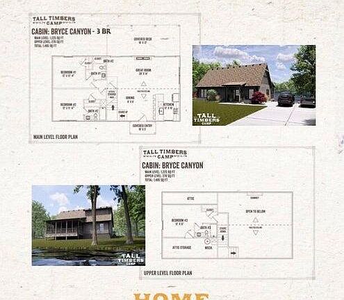 New release of cabin sites just announced!! Tall Timbers Camp is becoming known as the go-to spot for a Branson vacation cabin, and it should be your second home or next great short-term rental investment! The ''Bryce Canyon'' cabin offers a smartly designed 3-bedroom, 3-bath layout across 1,495 square feet, perfectly tailored for today's high-demand vacation rental market. Surrounded by nature yet loaded with amenities, this resort features stocked fishing and kayaking lakes, a stunning indoor pool, massive outdoor pool, pickleball and basketball courts, 6+ miles of hiking trails, and a real resort experience with a general store, food trucks, golf cart and gear rentals. Best of all, the surrounding 200+ acres of woods will become a permanent conservation easement, so Tall Timbers Camp will always be ''your home in the woods''! Check out Tall Timbers Camp on Instagram or Facebook to see what the community is all about! This is the perfect place to have a second home, an investment property, or the best of both worlds! Investors can self-manage, or choose any manager you like. Choose your cabin site now and enjoy a seamless process with the construction team to build out your dream - including customizations to make it your own! Construction is slated for completion on June 1, 2026. Limited sites remain, act fast to secure your spot!
