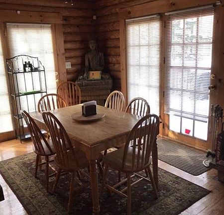 Beautiful furnished log cabin in great yet private location! Huge wrap around porch overlooking gorgeous 3.44 acre wooded lot! 4 generous sized bedrooms with tons of closet space! Master bath with Jacuzzi tub! Master bedroom features door to access fenced in rear yard! Large loft! Beautiful Stone fireplace in living room! 1 year lease. Security deposit 1 month rent plus 500 furniture deposit as well.