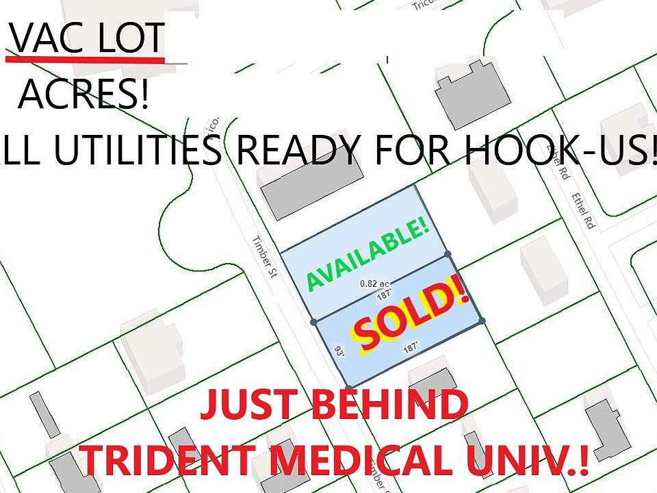 NEW, NEW, NEW***ATTENTION INVESTORS!! ***ALL UTILITIES *City water, Sewer & Electric, Ready for hook-up!! - *** LOT CAN POSSIBLY BE SUBDIVIDED INTO A FLAG LOT, AND TWO HOMES BUILT!!****Just behind Trident University, Hospitals, restaurants, and shopping!! This is a no Brainer!! Make your offer now! ****Zoned R1 = Single Family or modular homes ONLY