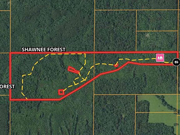 Prime hunting & recreational property adjoining the Shawnee National Forest in Southern Illinois! This is a turn-key hunting property that is complete with freshly cleared trail system throughout most of the property creating easier access to most areas . Super thick bedding cover in combination with several recently cleared food plots in strategic areas will create superb whitetail deer hunting. Hunter friendly topography with multiple draws, valleys and ridges create great travel corridors for cruising whitetails and great stand sites. Property is bordered by hard to access Shawnee Forest on the North and West side providing even more areas to hunt. There is a great stand of softwood & hardwood timber including white oak,hickory and other oak species. Property has has a timber cruise by a forester on parts of the property and he stated that there is some timber value. Numerous 22 inch diameter white oaks have been marked. A brand new deer blind will be included in the sale. Gated front entrance that leads to a great cabin or campsite hidden from the view of the road. Electricity is available along the road. This property lays out very large and can hunt several people easily. Don’t miss out on this property. More acreage is available .