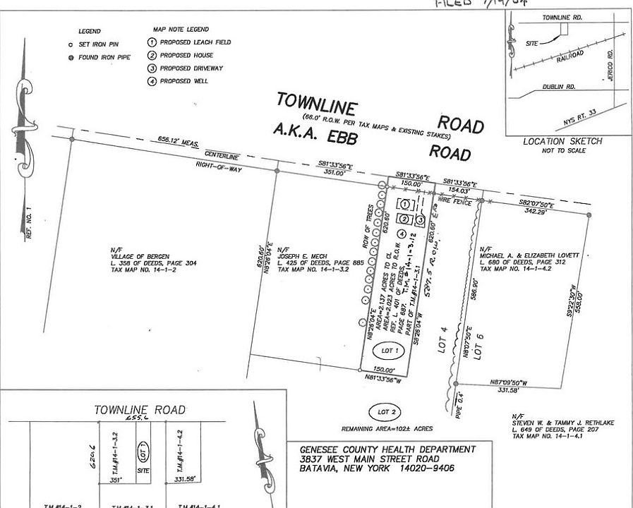 THE PERFECT 2 ACRE BUILDING LOT! A row of trees in the front, hedgerow along the sides, open in the middle. The lot is almost 600' deep! Partial driveway. Robbins Brook Park within walking distance. Public water available. Existing survey supplied. 20 minutes to Rochester, 15 to Batavia. Quiet country location.