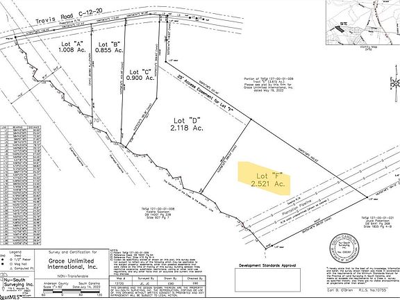 Level, unrestricted 2.5 acre homesite in Anderson! Conveniently located near Electrolux, Michelin and other major employers, this is a perfect site to place a mobile/manufactured home or build a home! This land is privately set back off the road and is accessed via an easement between 733 Travis Road and 739 Travis Road, Anderson.