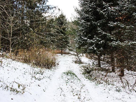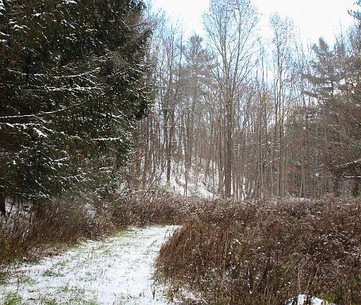 Magical acreage on a quiet road in beautiful Newfield. Waterfalls, swimming holes, mature and valuable woodlands. Now unimproved, except for a grassy driveway, but electricity is across the road and Spectrum claims to serve the neighborhood. Ideal location for writer's or painter's studio, or others seeking hunting or recreational land. Recent survey reflects 19.42 acres, with over 1000' of road frontage. Follow mown path to natural place to cross creek. Gear up for an adventure.