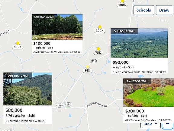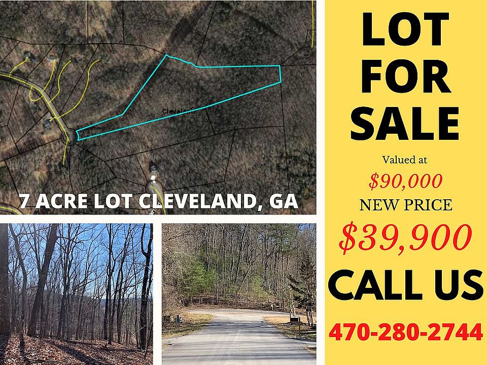 Cleveland, GA. Mountain view residential (R1) property with no HOA. Minimum home build size is 1,200 sqft. No mobile homes or RV's. Other properties in the area are selling for over 90,000 but this 7 acre property is easily accessible at the end of a paved cul de sac and priced to sell quickly for $39,900. Located in White County, GA, in the outskirts of Cleveland GA, with proximity to Historic Downtown Dahlonega (23 mins), and all the fun activities that Helen, GA (18 min) has to offer. Driving distance to Atlanta, GA is only 1 hour. This property is currently zoned as residential. There’s 7 acres of land to use for your favorite activities in the countryside, while still being close to everything. The property has underground electric and underground water access. You’ll find plenty of activities in nearby Dahlonega, from a variety of wineries, horseback riding, and waterfalls, to gem mining and shopping and restaurants. Small town Cleveland GA is a great alternative to those wanting a close getaway without the crowds of Dahlonega and Helen. Surrounded by mountains and streams, and with all the amenities needed nearby, Cleveland makes a great North Georgia destination.