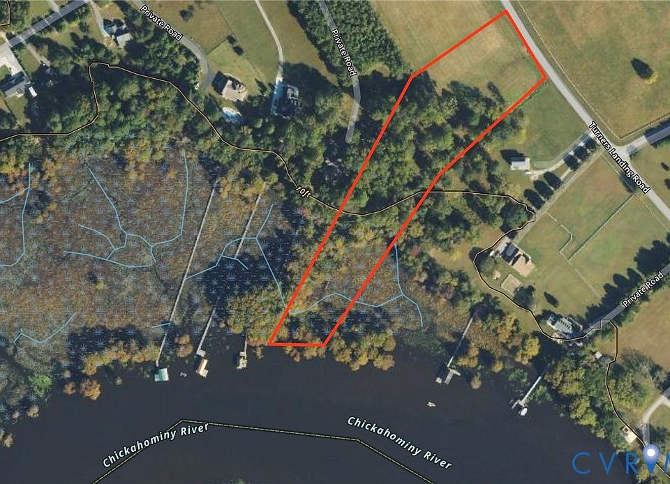 5.7+ waterfront acres on the Chickahominy River in New Kent County—an exceptional opportunity to build your dream home on a peaceful, scenic stretch of riverfront. Enjoy expansive water views and a tranquil, natural setting. Pier framework is already in place, ready for completion. Deep water access supports most watercraft, making this an ideal retreat for boating and waterfront living.