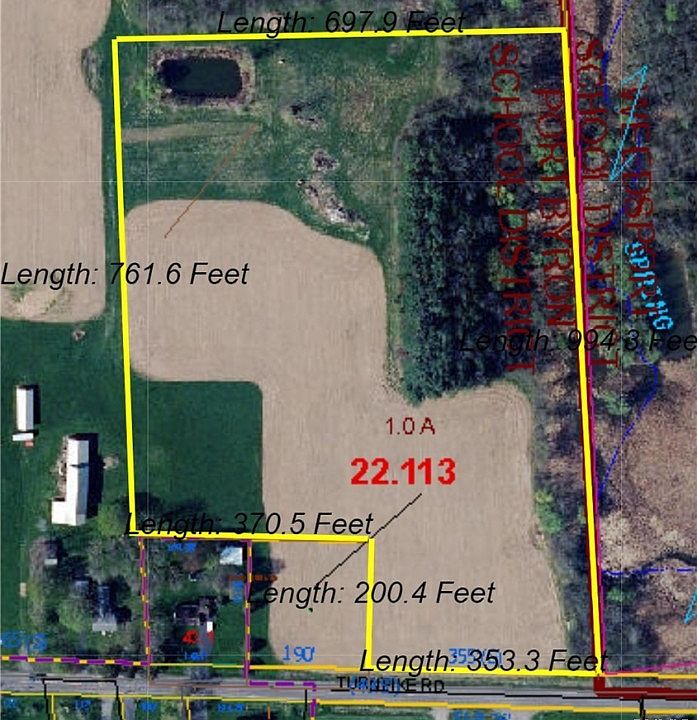 14+ acres in the Town of Throop. 355 feet of road frontage. Mostly cleared, partially wooded and a pond. Public water, natural gas and electric at road. Property is being subdivided from larger parcel and property lines and acreage are estimated. New assessment per Cayuga County Image Mate and taxes are based on Town of Throop rates. No tax bills available yet.