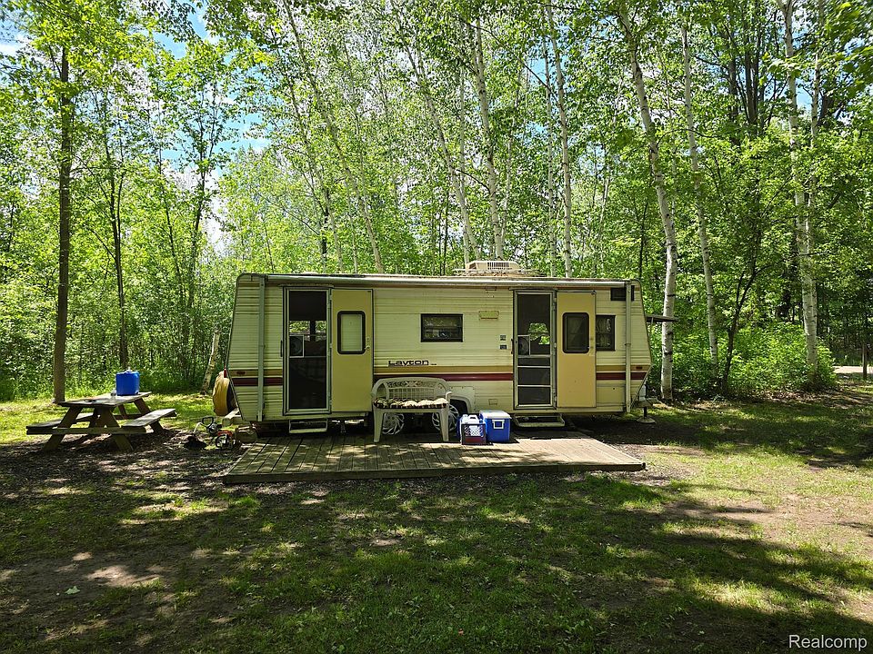 Beautiful, peaceful 4.99 acre parcel with that up north feel. This comes with a 1986 Layton Camper that's 26 foot long in good condition that sleeps 6. There's a deck in front of the camper, fire ring and 8 x 10 shed for the mower, quad or other toys. There's a clearing in the back that would be a perfect place to build that home! There's trails on the property that lead up to the elevated deer blind. Just a few miles from hundreds of acres of state land. Plenty of deer to be harvested, along with rabbit, grouse and turkey to name a few. You must be accompanied by a licensed agent to walk the property. Call today for you personal showing as this will go fast.