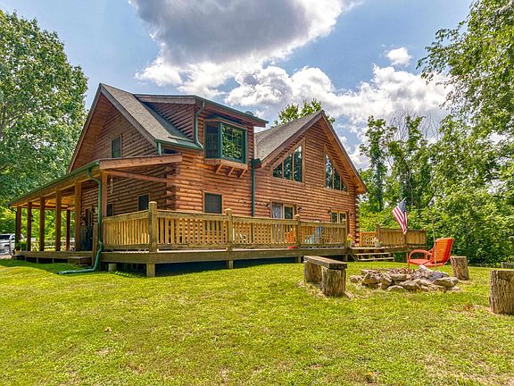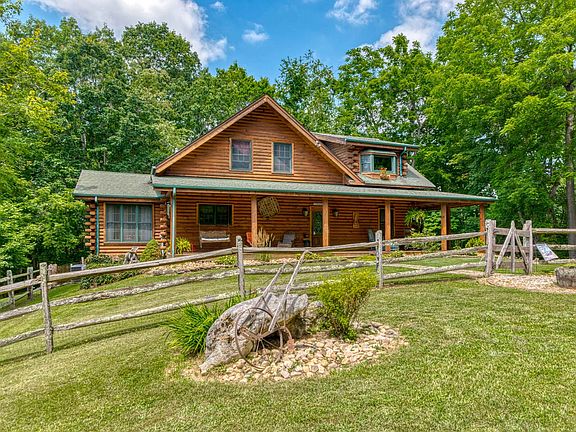 Nestled on 14.5 acres this cozy log home offers seclusion and convenience. Only 6 mins to downtown Christiansburg and Interstate I-81. When you walk in the front door you will immediately have the sense of warm and cozy. The high vaulted ceiling in the great room is accented beautifully with exposed wood beams, 6 large gable end windows, and stone gas fireplace. 3 bedroom , 2 bath , sunroom, laundry/mudroom w/ utility sink, Kitchen offers an eat in bar, granite counters, stainless appliances. Primary bedroom offers a walk in closet, and bay windows. Beautiful hardwood floors throughout the home. Enjoy relaxing on the large wrap around deck and take in the the evening sunsets and wildlife. Double detached garage for and plenty of parking space.
