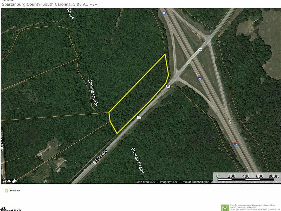 Over 5 wooded acres at the corner of I 26 & Hwy 49 in Spartanburg County. This beautiful property features mature trees, rolling topography and borders a creek to the west. The property could be used as commercial or single family residence with quick access to I-26.
