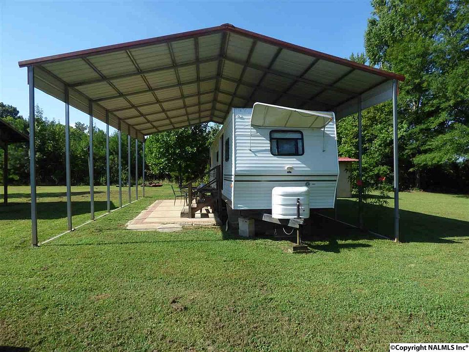 Ready to get away from everyday life? This quiet tranquil setting complete with a 38 foot camper with slide outs is perfect for you! The fully equipped camper sleeps 7 and is in excellent condition. There is a brick/concrete patio, a covered firepit area, and covered parking for the camper plus there is a permanent septic tank on site. There are also multiple storage sheds for the tractor with these beautiful level lots for a total of over 5 acres in this unique community. You can fish in the pond that borders the property or enjoy access to the Coosa River from the community boat launch. Potential to build a permanent dwelling or add additional recreational sites also dumping station.