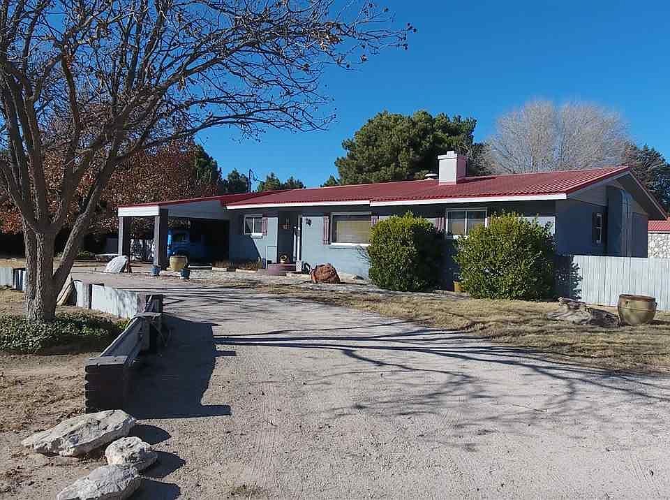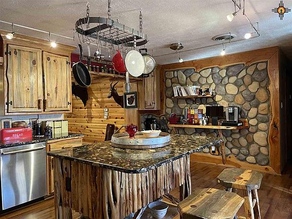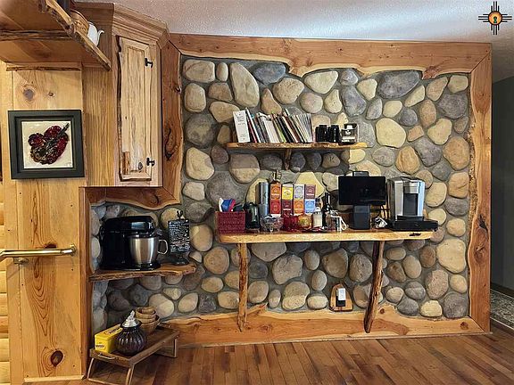 Gorgeous custom home on the outskirts of Lovington. Well built with lots of attention to detail. Back portion added in 2000 creates a stunning great-room perfect for entertaining. Large windows show off the breathtaking outdoors and very large patio which includes an outdoor kitchen, built-in fire pit, and outdoor television. In the backyard a very well built sturdy treehouse is built into the large tree in which it sits. Also in the backyard is what used to be a Meat Packing Plant believed by sellers to be the original Caviness Meat Packers as well as the Caviness's original home, now a workshop, complete with gorgeous rock walls to match the patio and rest of the home. There are no bathroom facilities or water to the old Caviness home although this could be added fairly easily. A large brick building with solid steel door and large covered parking area is the old Meat Packing facility which when closed up will hold in the cold/heat simply with its thick walls and solid build.