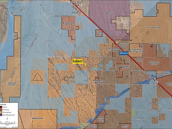 ±4.88 acres at Montgomery Rd & 235th Ave in Wittmann. Flat, buildable parcel surrounded by new residential growth. Great opportunity for custom homes or investment. Legal access from 243rd Ave & Montgomery Rd. ±1.35 miles north of Patton Rd.