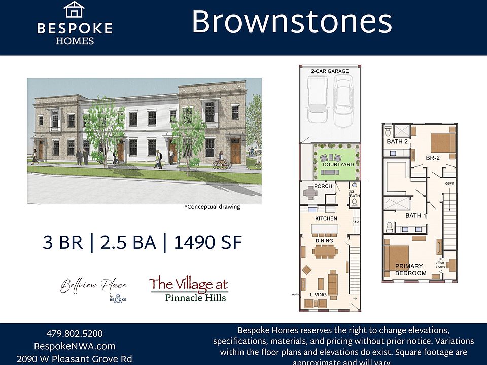 Come live, work and play in the heart of Pinnacle Hills Promenade. The Village is walking distance to the upcoming Bellview Entertainment District, Pinnacle Hills retail and restaurants, and just minutes from the Amp, TopGolf and much more! Brownstones, Townhomes, Patio Homes and Shop Houses will be blended throughout the development along with a bocci ball/pickleball courts, firepits and pergolas to gather around. Our homes come standard with large islands, quartz countertops, stainless steel appliances, including a gas cooktop, custom cabinets, Moen faucets ample storage and more. Come by our design center and go over what we have to offer and make your lot reservation today!