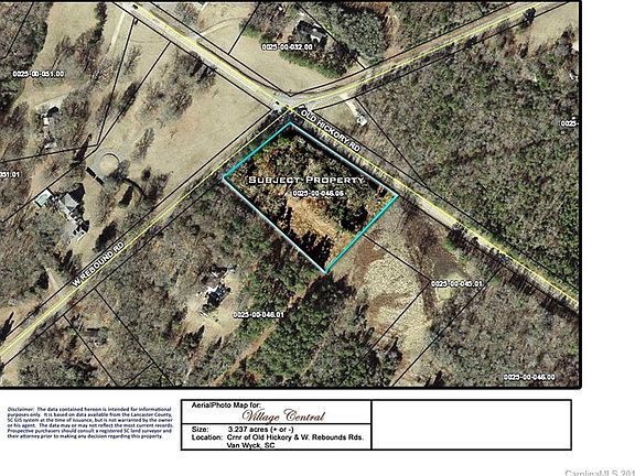 The recently incorporated Town of Van Wyck is home to this stately wooded 3-acre parcel. Situated at the intersection of Old Hickory and Rebound Roads, this property enjoys a spectacular mid-town location and overlooks the historic Moore estate and the Van Wyck Community Club. A canopy of hardwoods and pines overlay the elevated hillside with impressive homes nearby. Two new Lancaster County schools, Van Wyck Elementary and Indian Land High School, are being constructed only a few miles away creating high demand for future building lots within the area. Van Wyck is an active community with numerous functions for everyone at the Van Wyck Community Club, multiple Churches to select from, and an impassioned Van Wyck Ladies Club. The Town of Van Wyck is a highly desired residential haven offering a comfortable and satisfying lifestyle.