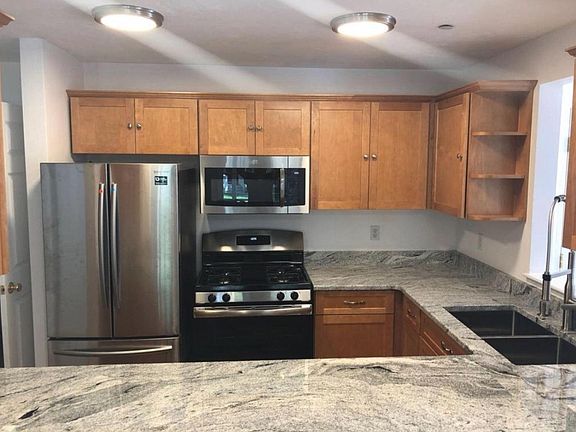 Located right in the heart of Arlington Center is this beautifully renovated 2 bedroom, 2.5 bathroom condo with high end stainless steel kitchen appliances, granite counters, hardwood floors throughout and directly across from the Minuteman Bikeway. Short stroll to Massachusetts Avenue. Unit has central heat and cooling, gas appliances and heat. Washer & dryer on lower level, private wrap around porch, one off-street private parking space, and snow removal. Master bed and private bath on first floor, guest bathroom, second master bed and bath located on lower level. One extra parking space available for rent. Move in as early as June 15th. For rent by owner, no brokers fee. Tenants pay for individually metered utilities. First, last and security. One private off-street parking space. Snow removal included. No pets. No smokers.