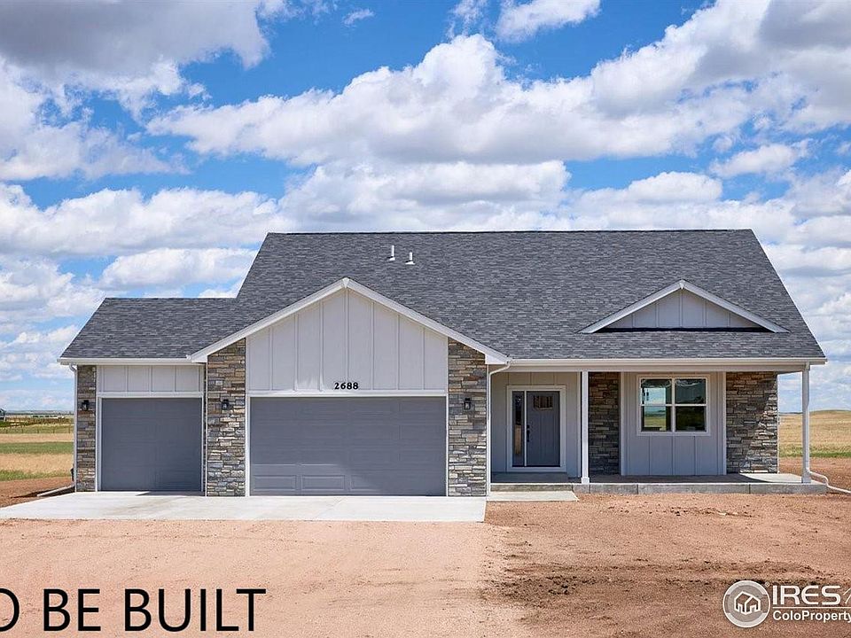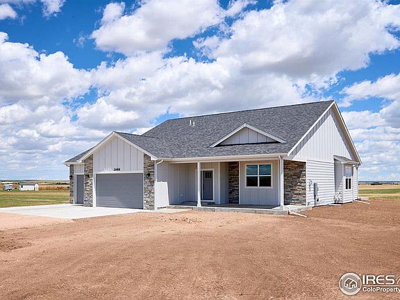 Escape the city to country living only a 5 minutes East of I-25 & wellington exit. This ranch style home will exceed your expectations with a open floor concept and mountain views from a semi-secluded neighborhood. This property is 1/8 of a mile off of paved CR 100 and allows horses, calves and chickens as well as your loved pets. Quartz countertops, stainless steel appliances and tankless water heater are all included. Home is 2x6 framing with blown in insulation and many upgraded features. This home is to be built so you can modify this one, pick another plan of ours or bring your own.