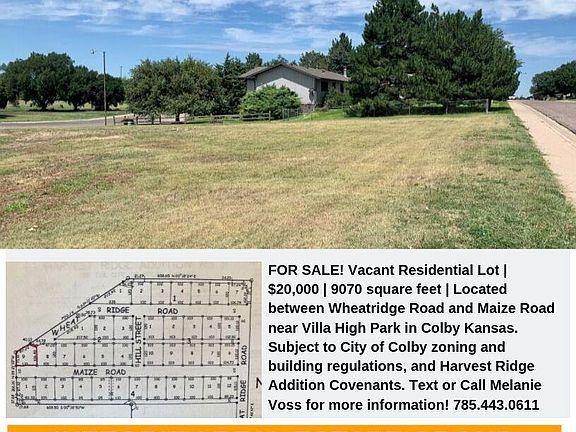 Vacant Residential Lot. 9070 square feet. Located between Wheatridge Road and Maize Road near Villa High Park in Colby Kansas. Subject to City of Colby zoning and building regulations, and Harvest Ridge Addition Covenants. Text or Call Melanie Voss for more information!