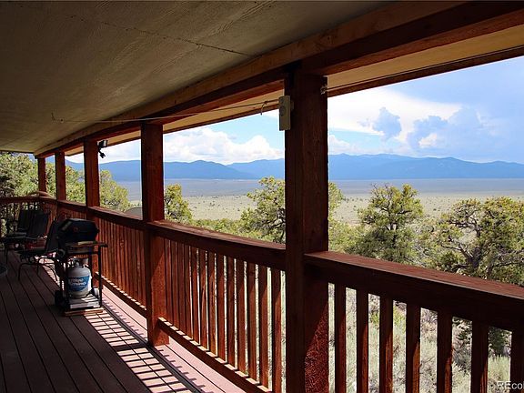 In the Wild Horse Mesa Canyon, only a small handful of homes exist, and all properties here are larger 35+ acres. At this home, you can sit on your 8' x 40' back porch like you never before dreamed to do, overlooking the Sangre de Cristo Mountains and the vast valley below as you sip your beverage and just breathe. The windows and doors in this home are set across from one another to allow the cooler summer breezes to waft through the house for that peaceful mountain living feel. This is a one owner home, utilizing off-grid features such as a solar energy system, septic system and buried cistern. A 12KW generator will ensure the batteries can still receive a charge when the sun has a less than accommodating. An RV pad exists at the NE edge of the property with its own drive way. Winter nights can get chilly, in addition to the forced air furnace, the wood burning stove in the living room can generate enough heat to keep you toasty and a Rinnai heater in the primary bathroom can utilized there as well. This home shares the acreage with two other homes as tenants in common, meaning your property tax on the acreage is only 33% of the norm. Being at the northern edge of the property, it is considered that there are about 10 acres attributed to this home. Though it is rare to actually see them, larger animals in the area include mule deer, elk and black bear.