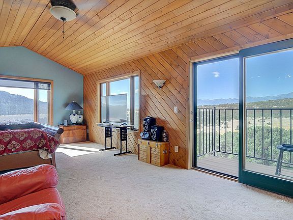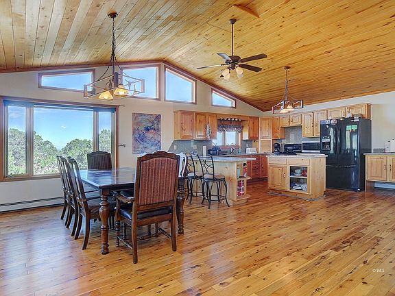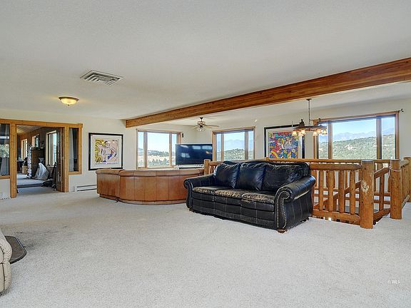 This large nearly 5,000 square foot LOG home is nestled amongst the pine forest on a gentle mountaintop with breathtaking mountain views, including the Sangre de Cristo range and Pike's Peak! This home features an "upstairs" living space that include a HUGE master suite, large great room and large kitchen/dining area! This upper level also has a nice sized office or 5th bedroom. The lower level is a walk out basement with an ADDITIONAL master suite, laundry and 2 more bedrooms. The lower level also contains a nice sized family room. The house is heated with a combination of in floor heat and hot water baseboard heat. The family room has a gas fireplace. Large outdoor decks are perfect for watching the sunrises and sunsets and seeing the dark skies and stars at night. The 1196 square foot garage is massive and has a finished workshop area also. This land is a great horse property and already has a nice barn for your animals and a workshop in that area also. The property is mostly fenced for animals. There are a total of 3 full baths and one 1/2 bath. Adjoining 35 acres available for an additional $100,000. Listed at $590,000.