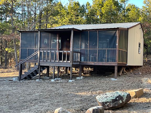 AirBNB Opportunity! Two Cabins on 5 acres with electricity, heat, air conditioning, a 1000 gallon septic and a Well for water. Located on Little Flat Top Road in the Kiamichi Wilderness that has approximately 10,000 acres of land around Big Mountain. Your Oasis is here. The wilderness offers tranquil creeks, mountain terrain, tall trees, and beautiful scenery, with plenty of wildlife. Enjoy hiking, fishing, and just getting out and enjoying nature! The Kiamichi has yearly dues of $200 and also $35 yearly for the on site volunteer fire department and helicopter pads. This 5 acre property has two cabins on it. The larger cabin is 575 sq/ft with a bedroom, loft, Kitchen, bathroom, laundry, and living room. The front porch is screened in and there is a covered area off the back. The smaller cabin is 240 sq/ft with an open kitchen living area, a bathroom, and closet. This cabin also has a covered deck out front. Both of the cabins have electricity, water, heat, air and a septic system. A 12x20 shed is also in place for storing your recreational vehicle that also has electric and its own breaker box. This place is ready for all of your future memories.