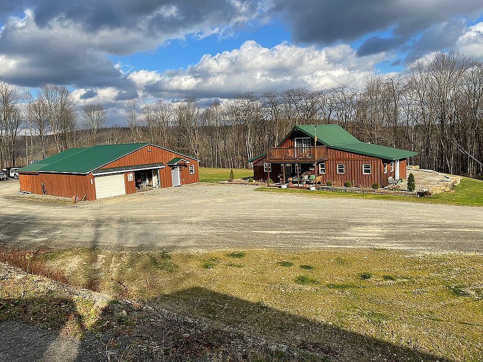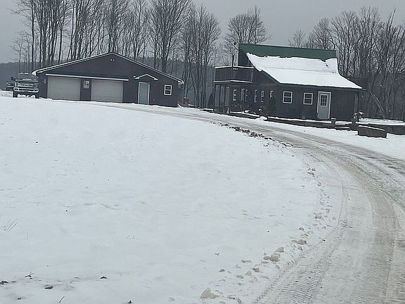 Over 35 Acres right over the PA border. Will sell only the house and 16.4 acres that goes with it, or the 35 acres in all. Private property way off the road sits at the top on hill, great place to relax or rent out for a AirBnb. The house offers more than what you see. Loft sweet up stairs, living room, dining room, kitchen and laundry closet down on main floor. Large garage with 3 bays, and has an office attached. The price is flexible. Serious enquires only, please!