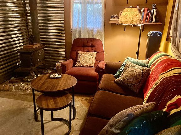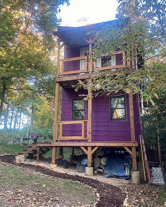 Unique owner-built homestead sitting on 1.74 acres bordering 4,000+ acres of protected forest (Rocky Knob National Recreation Area) in Floyd County. About half the land is cleared with scattered trees and houses a 2-story 500 sq ft. building with a large deck off the back door, and a smaller deck off the front plus a 10’x6’ shed. There is plenty of storage space between the shed, under-the-home storage, cabinets and shelving indoors plus a covered back porch for wood storage (we can even include firewood to get you started) and a mud room in the works. So you can start enjoying this place right away, the property is being sold furnished. This property is completely off-grid and has 4 large solar panels on the roof and state-of-the-art battery and inverter system. Between the main structure and the shed, there is storage for over 350 gallons of rainwater. A wood stove keeps the home cozy on cold days. There is a composting toilet, foot-pump sink, and a composting area for yard clippings and vegetable scraps. You can stay here utility bill-free! There is currently no running water indoors, but could be gravity-fed indoors with a small investment of time and funds. There is electricity and internet at the road if you want to get on the grid. The land is surrounded by a natural barrier of rhododendron and blackberry bushes. On top of the hundreds of blackberry bushes, you can also find wild blueberries and edible mushrooms on the property. Pear, persimmon, wild plum, and paw paw trees have also been planted. There is a sunny garden area with raised beds and an established herb garden. In the forest, there is a magical clearing with a wood-fired bathtub where you can enjoy a soak under the stars. There’s a gravel driveway and a parking area for 3 vehicles. A farm gate allows you to secure the property when you’re away. The property is feels private but is also conveniently located, being only 0.8 miles off the iconic Blue Ridge Parkway and a quick 5 minute drive to Family Dollar, the post office, and a bank. You are also within 2 miles of 2 wineries. Meadows of Dan is just 9 minutes away with gas, hardware, a coffee shop, restaurants, shopping, and your basic grocery needs. Floyd is a 20 minute drive and Stuart is 25 minutes away too. Make this super special off-grid dream home yours today! This is technically improved land with an agricultural building so it is not eligible for a traditional mortgage loan. Feel free to reach out with questions or to schedule a visit before this unique opportunity slips away.