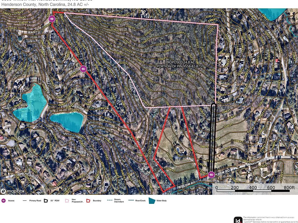 Offering a +/- 24.8 acre portion of Hendersonville's last large developable tract of land. This tract will be accessed directly off of Willow Road. City water is available to the property along with high-speed internet and power. City sewer is not readily available. The vast majority of the land allows for either easy-to-build walkout basements or crawl space homes. Approximately 15 acres of this tract lay relatively flat. The northeast portion of the property lies around 2,300 feet in elevation; these home sites offer a long-range southern view of Pinnacle Mountain. This particular portion of land is located in the Town of Laural Park's ETJ R-20 zoning district. Other than zoning restrictions, there are no covenants or deed restrictions on the land. This proposed tract of land is approximately a +/- 24.8-acre portion of a larger +/- 41-acre parcel of land (Henderson County PIN 9558-82-8731).