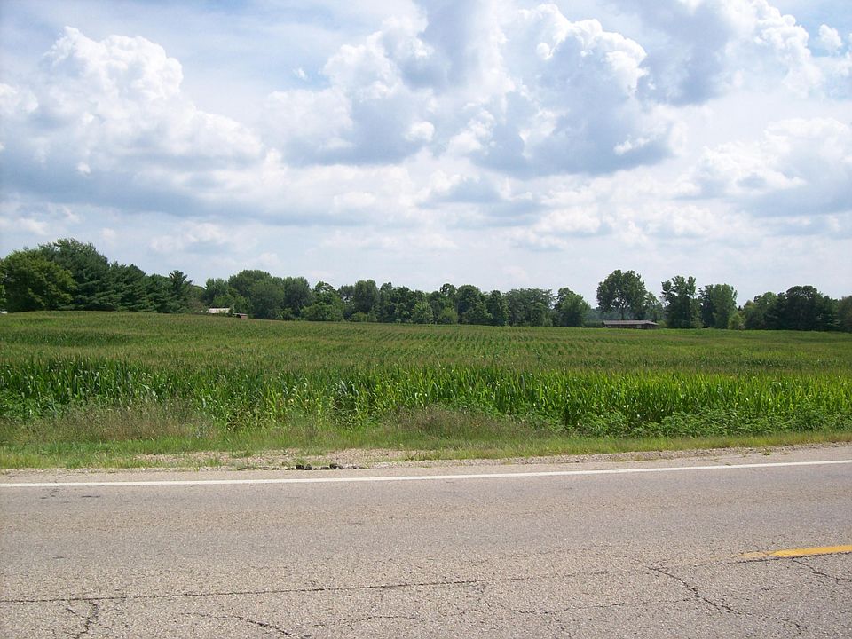 Land leased to farmer who will harvest the crops at end of season. Sale is subject to this provision. This land is zoned for residential or agricultural. Buyer can divide land subject to county approval. Sign in front of acreage. Look for the cornfield.