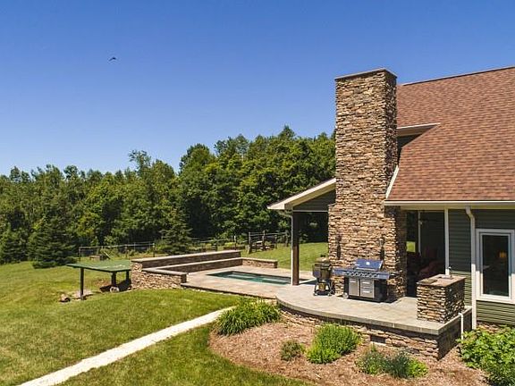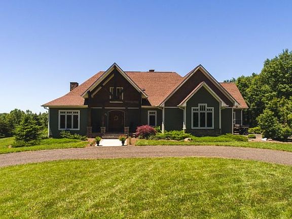 Contemporary Custom built home located in Meadows of Dan, VA area. Home offers unparalleled craftsmanship and exceptional amenties! The massive post and beam work on front facade of this home introduces you to the remarkable design inside and out. Features include gourmet kitchen, granite countertops, barrell ceiling in entrance, custom windows providing plenty of natural lighting, expansive porch (for entertaining) which includes outdoor kitchen, fireplace and TV, gorgeous master suite, exercise room, plus stunning long range views of the Blue Ridge Mountains and Primland Resort., 3,750 Sq Ft finished. 4 bedrooms-3.5 baths. Oversized 2 car garage. Main level: Foyer, Butler's Pantry with built in buffet and storage for Crystal and China. Large Dining Room with custom Wainscoting, recessed lights and Phillip Jeffries Grass Cloth. Living Room with Coffered Ceiling, Exquisite Light Fixtures and Views from 3 sides. Hall connects Foyer,