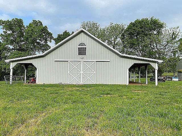 40 X 48 POLE BARN WITH WITH ATTACHED SIDE SHEDS. BOTH SIDE SHEDS ARE 12 X 48. 20 X 36 IMPLEMENT SHED. 2 WELLS ON THE PROPERTY, 1 FOR PUBLIC USE, 1 FOR FARM USE