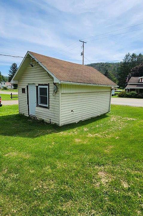 Unique building completely renovated inside with just one large room. Would make a great little camp, Notary Business, Work shop or road side stand. The wiring was all updated inside with 13 different outlets and electric baseboard for your heat.