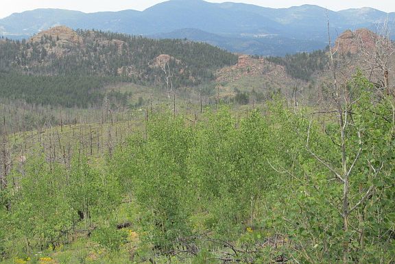 Gorgeous acreage bordering National Forest has so many possibilities! Build a dream home, rustic cabin, recreational retreat, or simply use for camping, hunting, 4-wheeling, shooting, etc. The 360 degree vistas of Pikes Peak, the Collegiates, Turkey Rock, Badger Mtn, Stohl Mtn, Crystal Peak, and more will take your breath away and are what you'd expect from Colorado living! Wonderfully diverse landscape & usable terrain offers aspen, pine, fir, spruce, a spring & rock outcroppings. County Rd 51 is same as Natl Forest Rd 360 as it crosses property. Location is close enough to Indian Creek to not feel isolated but far out enough to get away from it all. The Hayman Fire burned part of the property, but the aspen and ground cover have grown back richly and thickly. Much logging, seeding & clean-up were done. The only limitations are your imagination! Total acreage for sale is 166 ac. May be purchased as 40+/- acres (MLS 7980669), 80+/- acres (MLS 4736228), 120+/- acres (MLS 8488260), or 160+/- acres (MLS 6486316). Approximately 40 minutes to Woodland Park, 60 minutes to Colorado Springs, and 90 minutes to epic ski resorts or rafting adventures.