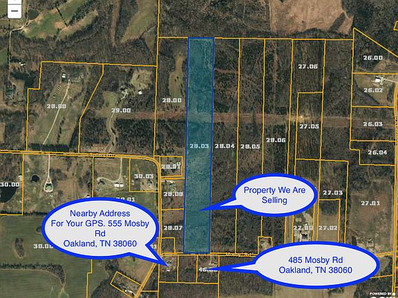 Beautiful 24.46 Acres lot located in beautiful Oakland,TN in Fayette County only 31 miles from Memphis. Great for hunting! Buy for a short or long term investment or purchase and build your dream home away from the hustle and bustle of the big city but close enough to all the amenities that one could need. Less than 10 miles from Hwy 64 and Hwy196 PROPERTY INFO ADDRESS: Mosby Rd, Oakland, TN 38060 Nearby Address: 555 Mosby Rd Oakland, TN 38060 Our property is on Mosby and nearby Sellers Dr SIZE: 24.46 Acres (1065478 SQFT) 375 ft across by 2,9994.5 Price:$149,999 Parciall #024108 02803 SHORT LEGAL: LOT:2 DIST:11 IRENE SMITH BOYLAND EST 2 MAP REF:108