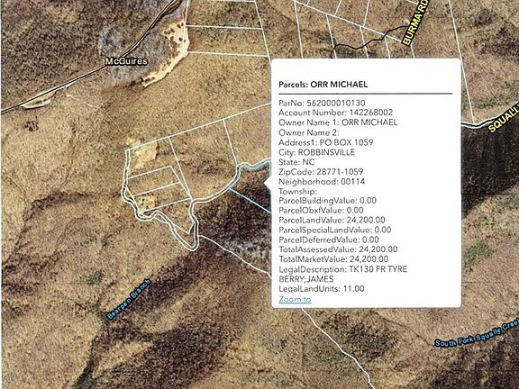 Located at approximately 5000' elevation this back country acreage is for the outdoorsman. Hunting, native trout, 4 wheeling. The property consists of 2 parcels 129 and 130. It adjoins a large property owned by Mainsprings Conservation Trust consisting of over 700 acres. There are a couple of access points off the Cherohala Skyway but they are private so you would need to talk directly with the owners. In the alternative Squally Creek Rd would be your access and it is 4 wheel drive only. Last time I went 4 wheeling in this area I seen a momma boar with 9 babies. I have an additional 35 acres listed for sale also and they almost connect. No restrictions. Burma Road comes into Squally Creek at the properties.