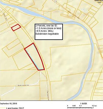 Opportunity for homestead, private get-away or recreation. Shed of no value. Parcel consists of two pieces of non-contiguous land. ~1.5 Acres, more or less and ~8.5 Acres, more or less. LOTS of road frontage!