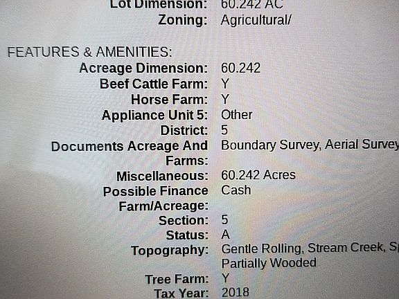 No email and no texting please call only 770-516-4250 This properties is selling by owner I do not need help from any agent or real estate agency. 60.042 Acres is for sale by original owner over 50 years no real estate agency need to call or text No email and no texting calls only please. 60.242 Acres, located on city of white and near by city of Cartersville, Georgia all school and colleges near by, 2 miles from largest plant Anheuser-Bush most Modern Brewery in USA and coming soon bush garden and 20 minutes to Atlanta, Also 2 miles I-75 and I-411 and plenty of industries,$40 billion Shaw Industries, Largest Lake in state of Georgia Lake Allatoona and much more. The Land some in virgin wood and some in farm land. 2 natural creeks, beautiful natural landscape with mountains in background. Historically situated. Property contains all utilities, American Indian wells, wild deer, wild turkeys, squirrels and rabbits. Adjoining horse ranches with white picket fences enhance the beauty of this property. Property is located conveniently to shopping malls, Bass sport complex and shop, Cabela's also stores and restaurants. Must see the un-believable natural beauty of the scenery, smell the fresh air and know that you are only minutes away from a thriving. Call the owner: 770-516-4250