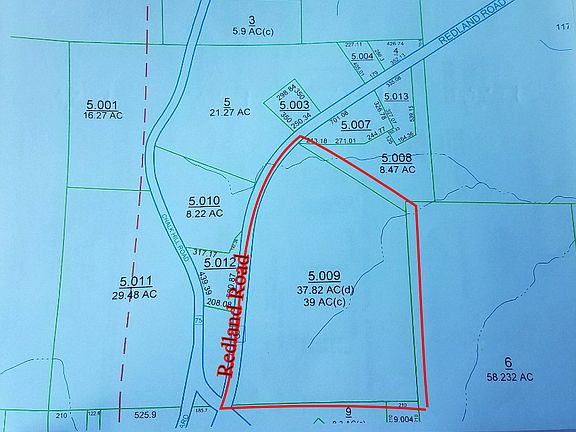 37.82 Acres of Land. Located at the corner of Redland Road and Rock Springs Drive. Elmore County. Tallassee, Alabama. Seller is motivated. This property is wooded and has wildlife on it. It has been used in our family for hunting deer. Has a small creek when it rains. The county map shows two. I've included those maps and have outlined the property with red. You will also notice that the plot (5.009) states 39 acres; however, it is deeded at 37.82 because the section closest to Rock Springs drive has the gas line running through it. It is my understanding from the courthouse that this means that you have access to hunt the property that entails that additional acreage; however the gas company has right-of-way. Motivated seller. Contact me today.
