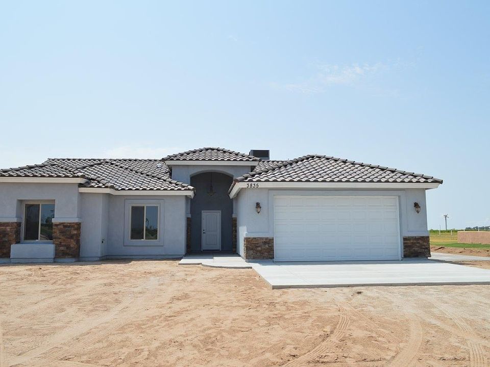 Your dream home, away from hustle-bustle of the City on 2 Acre lot with Irrigation. Premium features - 9' CEILINGS, GRANITE COUNTER TOPS, CONCRETE TILED ROOF, CULTURED STONE VENEER,(see attached standard features list and floor plan). House not built yet, Pictures show a house built elsewhere in Yuma with several upgrades. Builder pays up to $3000 in buyer's closing costs. Landscaping not included. Other lots available to build this floor plan. See attached maps. Triguna Israel has an Ownership interest.