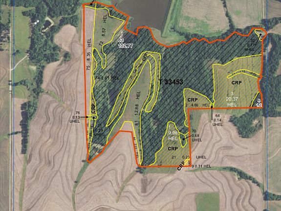 Absolute outdoorsman's paradise with income! This property offers it all to sportsmen and outdoor enthusiasts. 185 acres of wooded timber and native grasses. The CRP income pays approximately $4800.00 to the landowner. There are 3 ponds on the property stocked with fish that offer great waterfowl hunting as well. The timber is full of hardwood trees including some giant oaks for turkeys to roost in.No shortage of Trophy deer that live on and frequent the property.