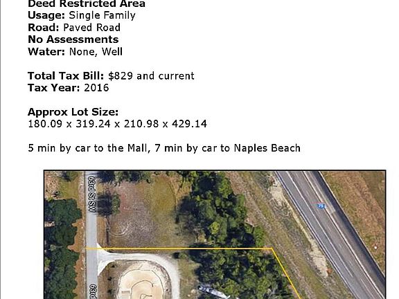 Location, Location, Location in Naples - most sought out location with land!! Just minutes to downtown Naples, Coastland Mall, Naples Beaches, Nightlife, Shopping 1.55 Acre Cleared Lot ready to build on! Quiet, 180' Wide Frontage, No assessments, Taxes current, Private lot just West of I-75 off Golden Gate Parkway. call 239.280.7742 See attached Flyer. **For additional costs, we have completed and engineered blueprints for a 2497 sf one story home with 3 car garage, 4+ den, 3.5 bath, Pool/Spa, Living Room, Family Room. DO NOT CALL US IF YOU ARE REALTOR LOOKING TO PICK UP THIS LISTING!!! Serious buyers only!! 239.280.7742