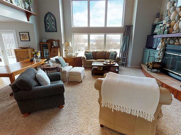 A special home just outside of Boyne City, with four bedrooms and 4,000 square feet of space. With a thoughtful floor plan, this spacious home is both a gathering place and a retreat - whether you're in the mood for Cribbage with the family or a quiet reading nook on a rainy afternoon. Cook in the updated kitchen with a view through windows spanning the entire hillside of this home. The lofted upper level has two bedrooms and spectacular views thanks to vaulted ceilings in the living area. Floor to ceiling windows grace the living room as well as a spectacular stone fireplace, perfect for those chilly evenings. Real hardwood floors cover the kitchen and dining area, making great access to the rest of the home. Spend days running through the green grass picking apples and evenings chasing fireflies. At the end of the cul-de-sac of the Blue Water Ridge, enjoy the countryside charm with a gorgeous ever-changing scenery. All this is an easy distance from Boyne Mountain's famous ski resort as well as downtown Boyne's dining and shopping, schools and thriving community. Views of the lake are being expanded upon with the association.