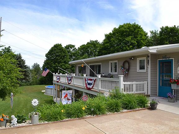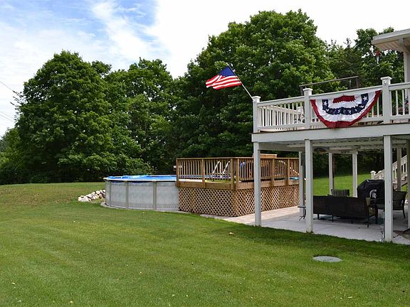 In a peaceful setting at the top of the hill surrounded by an array of trees, this completely remodeled home is simply fantastic. A 3 bedroom home just outside of the city limits with a beautiful main-floor master suite. The kitchen is open and bright with white cabinets and a beautiful herringbone back splash. Dine next to multiple sliding doors for a peaceful view. The newly built stone fireplace is hands down the focal point of the living area. The lower level has two additional bedrooms, a full bathroom, and a walkout living area. Outside, enjoy an above ground pool with a deck built around it for those hot summer days. This house offers easy maintenance with an underground sprinkler system touching the majority of the front lawn.