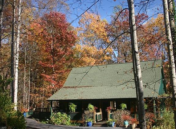 Million dollar VIEWS of Lake Lure from this perfect mountain retreat! A well built A-frame home opens to a covered wrap-around deck for maximum outdoor enjoyment. Relax on the private 14+ acres that includes a hiking trail to a waterfall/sliding rock. Property also includes a 4-car garage/workshop with finished living area. Beautiful low maintenance landscaping. Wonderful community hiking trails, lakefront picnic areas & fishing pond. Active social community w/golf groups, book club, etc.