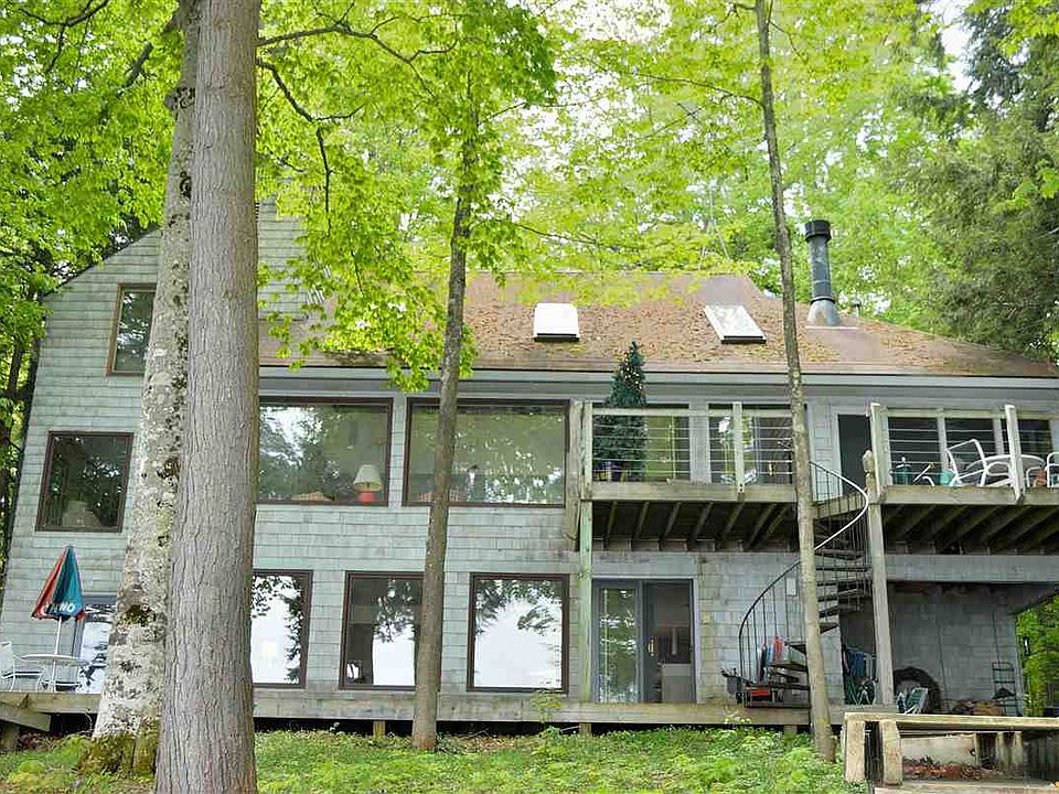 Nestled in picturesque Walloon Lake, this unique home is perched over the water's edge to give you unobstructed views of the South Arm. Offering 5 bedrooms and 3 and a half baths, there is plenty of space to host a perfect retreat for your family & friends. This home features an open concept main floor and a full walkout basement that leads to seemingly endless decks, overlooking the sandy shoreline. Enjoy the quaint screened in porch off the main level on warm summer days and 5 fireplaces for cold nights.