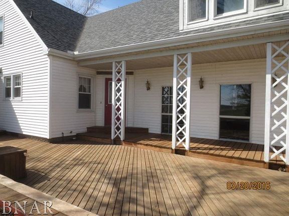 New Reduced Price on this LOVELY COUNTRY HOME - just north of Gridley, IL. 4 BD, 2.5 BA w/Original Woodwork and Hardwood Floors in the older section of the House! Newer addition was added that provided a LARGE Family Room w/wet bar in the corner. BIG windows for country views and pleasant country breezes! Good size private Office was added above the 3 car garage.(Window Air&Baseboard Heat). Kitchen has been updated with beautiful hickory cabinets. Kitchen appliances stay. First floor bedroom has been used as extra room and a full bath next to it. Upstairs is the HUGE Master Bedroom w/its own bath and walk-in closet, garden tub, built in extra seating area in Master BD. Two more Bedrooms upstairs with hardwood floors, 2 closets per bedroom, shared Partial bath. Bathrooms have all been upgraded. Awesome 4 Season Sun Room just off the large deck with natural gas grill would be a cheery room to enjoy! Full unfinished basement.