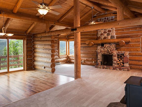 End of the road privacy, quiet and peaceful setting. Great walking and mountain biking neighborhood with warm, friendly and helpful neighbors. Hand crafted cozy log home on 3.5 acres, but feels like 35 acres with endless wildlife viewing; deer, elk, wild turkeys, red tailed hawks, coyote, bear and bald eagle. Easy access to Carbondale, Glenwood Springs and the upper valley, less than a 10-minute commute to Highway 82 that involves splendid views and beautiful horse properties. Three bedrooms, two baths, open spacious living room with stone fireplace, lofty ceilings and amazing views from the large deck. The assistance of the woodstove and propane stove heat the home easily and economically. Large two bay detached garage with lots of storage. Call for a viewing today!